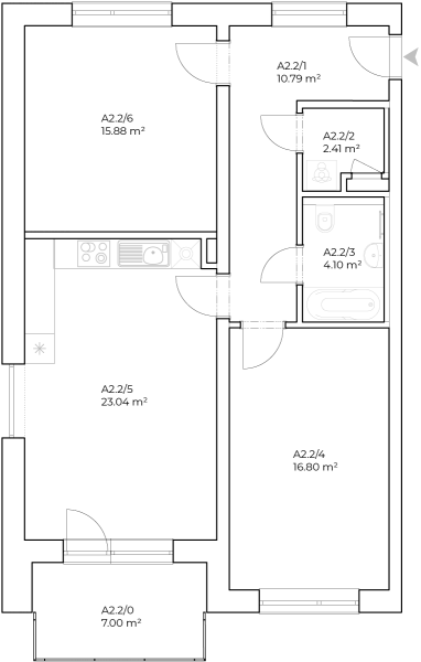 Plán půdorysu a plošné výměry jednotlivých místností jsou pouze orientační. Vyobrazená zařízení a vybavení (kuchyňská linka, elektrické spotřebiče, nábytek, atd) nejsou součástí dodávky. Přesný rozsah dodávky standardu a ploch je specifikován ve smlouvě. Developer si vyhrazuje právo na změnu standardu. Veškeré údaje v tomto schématu mají pouze informativní charakter a mohou se lišit od skutečnosti.